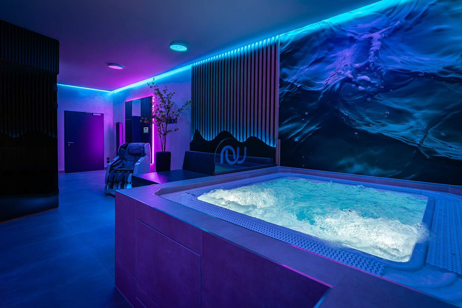 Alles, was du brauchst: Whirlpool, Sauna, Dusche, eigenes Bad mit WC und Föhn, Licht- und Soundsystem, Bildschirm und ein gemütliches Daybed. Von der Lichtstimmung, über die Bubbles des Whirlpools bis hin zur Temperatur deiner Sauna kannst du fast alles persönlich einstellen.